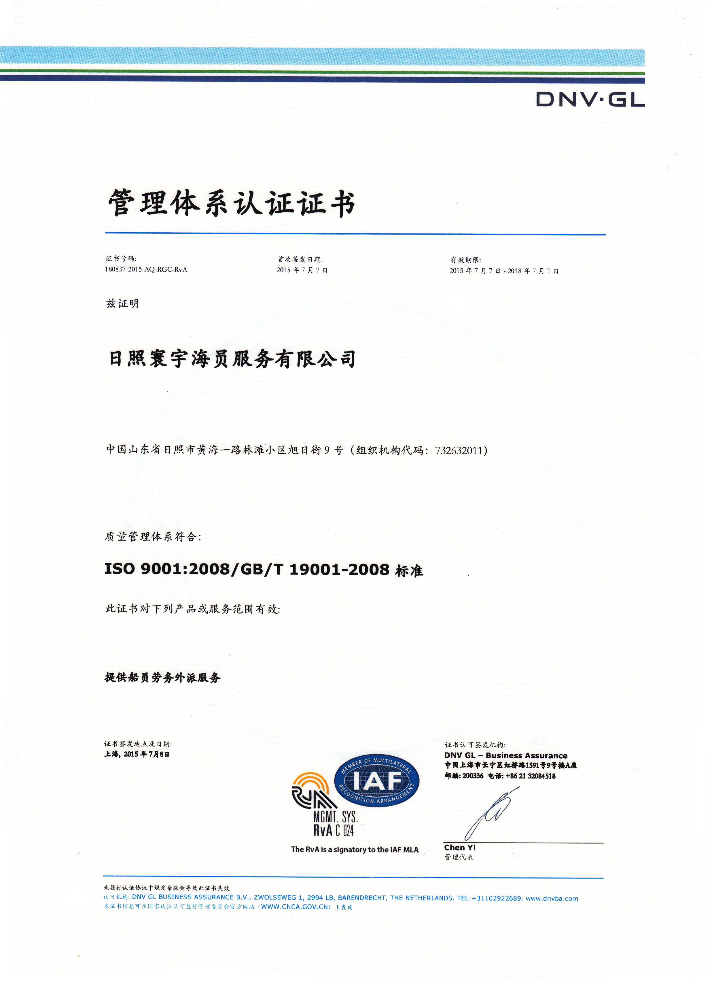 取得DNV GL认证